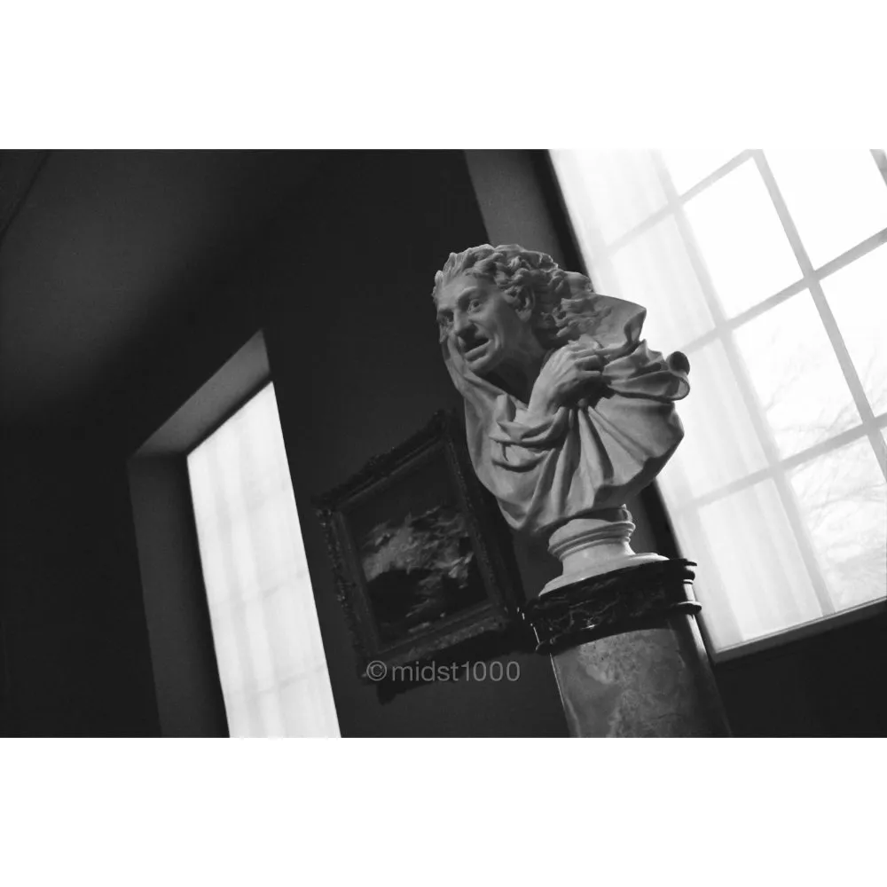 A sculpture stands before the window, half in shadow, half in the pale glow of day. Its expression, frozen in silence, seems to carry a memory that only light can hear. A moment suspended between the past and the room that now holds it.
