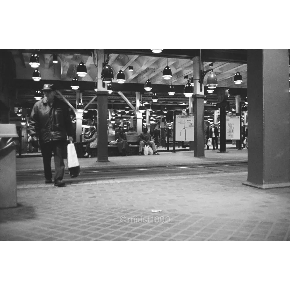 Under the weight of the streets above, a traveler waits for the next train. Some journeys begin before the train arrives.